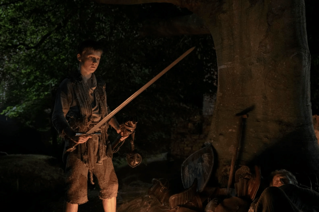 The episode opens with Dunk entering the seven-against-seven melee, quickly finding himself unhorsed. However, instead of following the immediate aftermath of the clash, the narrative abruptly shifts to an extended flashback detailing Dunk’s formative years in Flea Bottom. This structural choice, while ambitious, proves somewhat disruptive to the episode’s pacing.