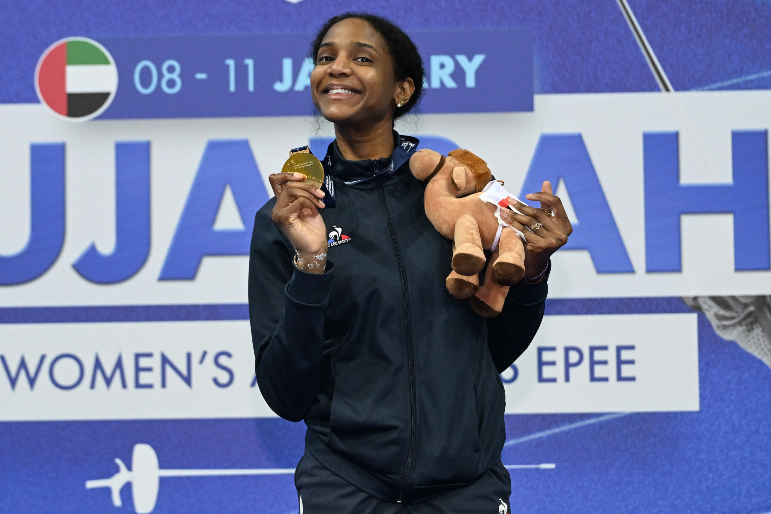 Marie-Florence Candassamy won the gold medal at the FIE Epee World Cup in Fujairah, United Arab Emirates.